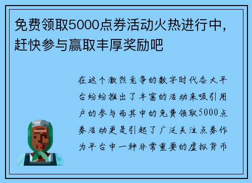 免费领取5000点券活动火热进行中,赶快参与赢取丰厚奖励吧