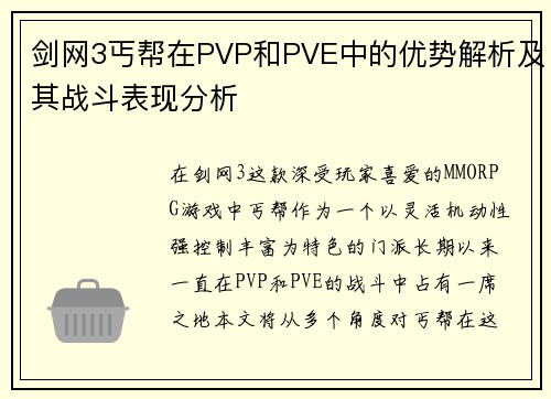 剑网3丐帮在PVP和PVE中的优势解析及其战斗表现分析